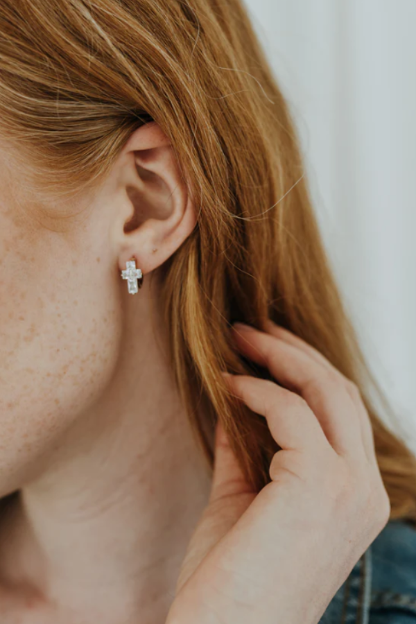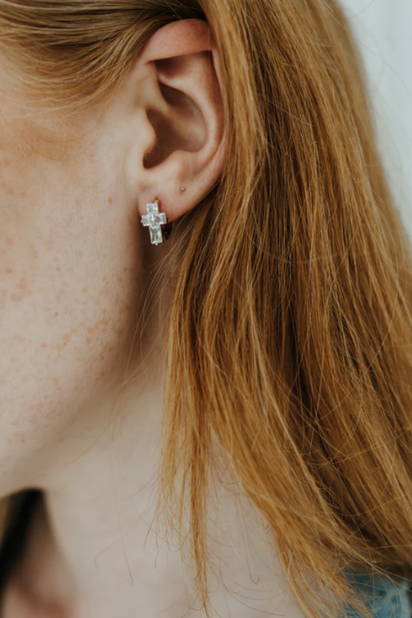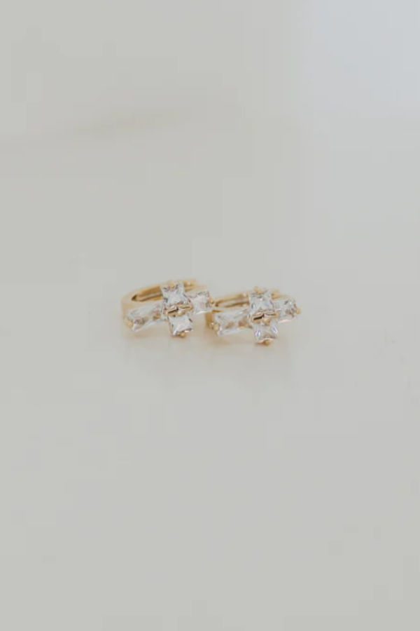 The Alta Cross Huggies bring together clean lines and soft radiance in a petite gold hoop. Designed with a modern cross silhouette made from baguette-cut cubic zirconia, these earrings are the perfect nod to quiet strength and everyday elegance. A timeless addition to any collection — wear them as a symbol or simply for the sparkle ✨