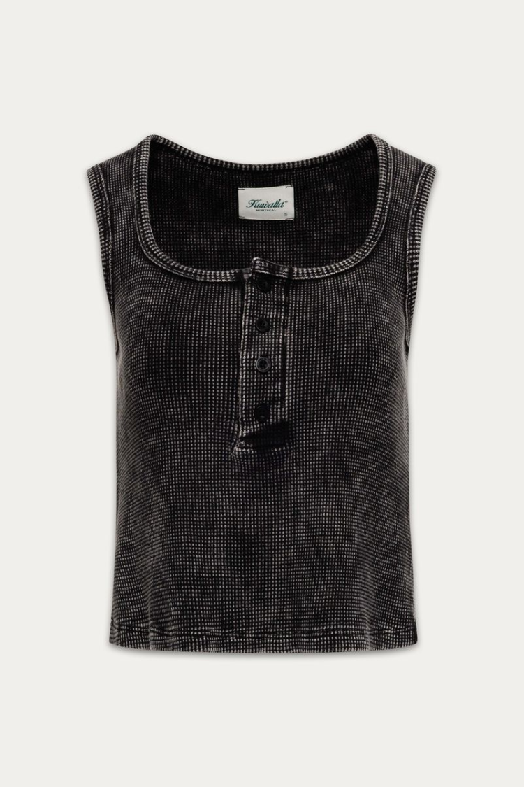 Featuring a classic waffle knit fabric that breathes beautifully, convenient front buttons for easy layering, and thoughtfully designed bra-friendly straps that won't slip or dig in. Perfect for warm weather wear or as a versatile layering piece that works with everything in your closet.