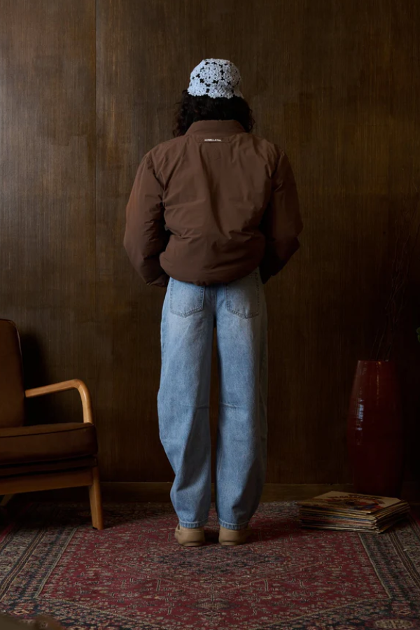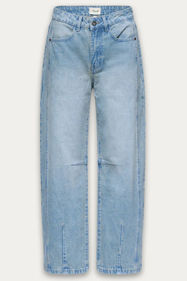 Vintage blue low-rise jeans with a relaxed barrel leg silhouette
