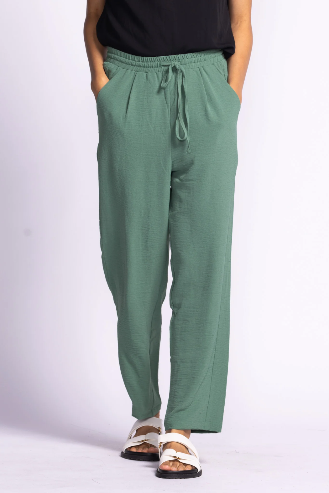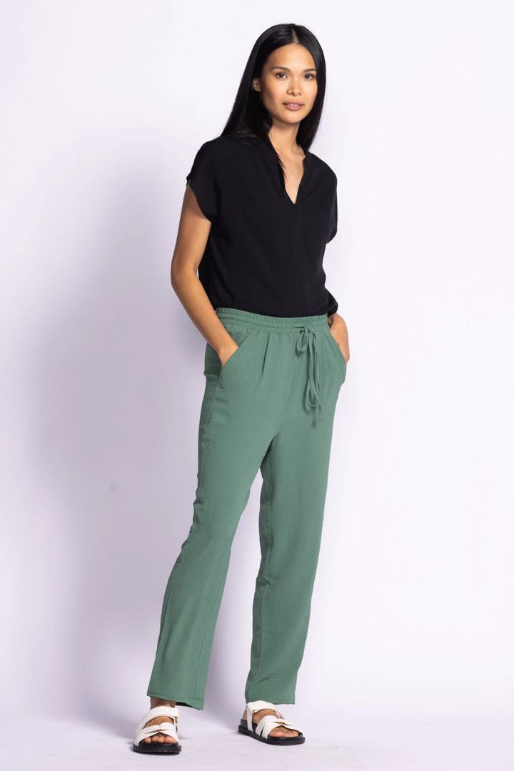 The Crawford Pants feature a relaxed fit with a drawstring waist and handy side pockets—lightweight, breezy, and perfect for warm days!
