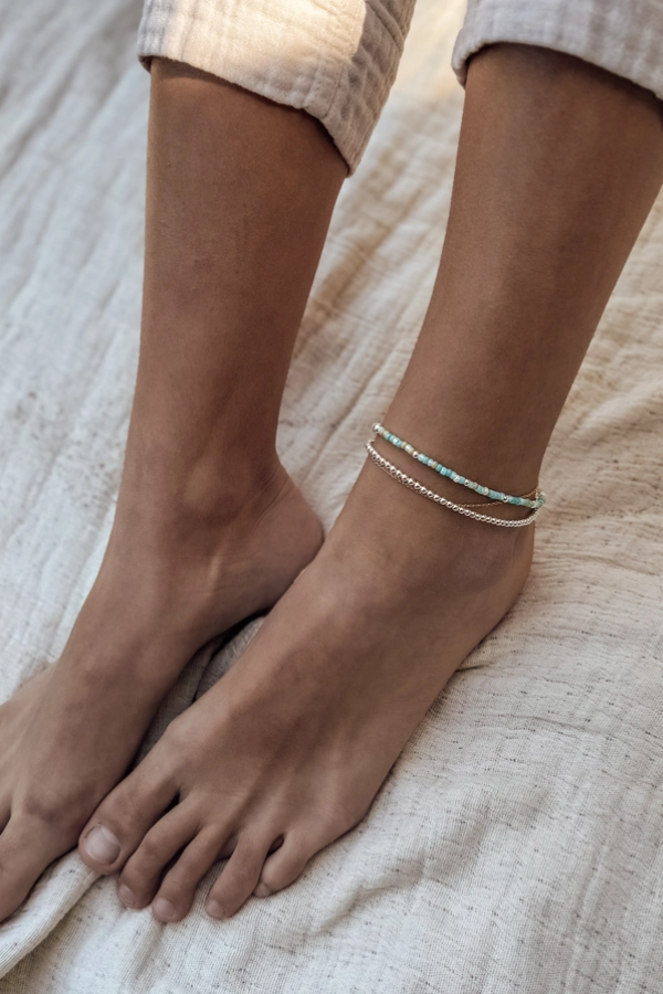 Elevate your summer style with our 3mm Sterling Silver Beaded Anklet, the perfect accessory for beach days and beyond. This dainty foot bracelet features high-quality 3mm sterling silver beads, tarnish-resistant and durable construction, adjustable length for a perfect fit, and lightweight comfort for all-day wear.